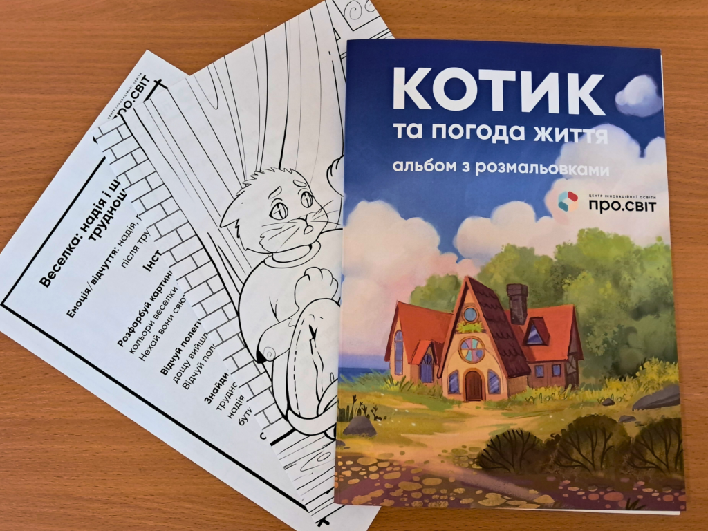 - Альбом з розмальовками «Котик та погода життя», до якого входить 10 розмальовок формату А4.